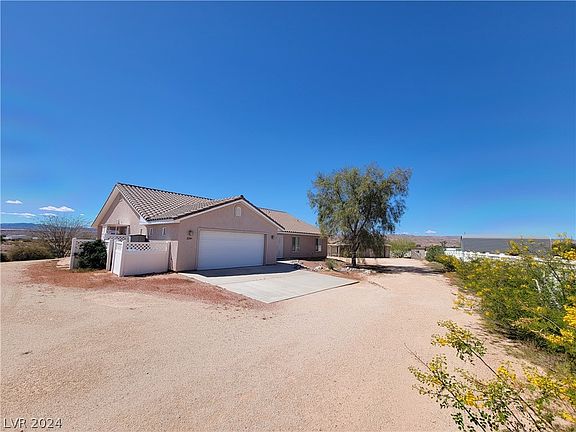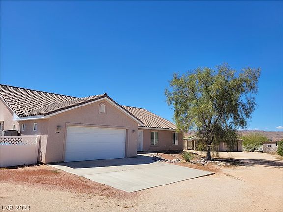 Take in the view from the large covered back patio area! Beautiful open floor plan 1968 SF, 3 bedroom, 2 1/2 bath home with vaulted ceilings, attached fully finished 2 car garage. Detached 25'x42' garage/shop with 1/2 bath and storage or workshop area with a 1 car garage door. Spacious 2+ acre lot, low maintenance desert landscaping with plenty of room for horses or RV parking all less than a mile from BLM land for endless off road or horse riding possibilities! RV hook up located near detached garage.