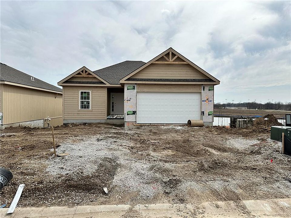 The popular Micha II reverse plan provides tons of living space with 2 bedrooms on main floor and 2 additional bedrooms in the basement on a walk out lot with WATER view!  Conveniently located near many eating, retail and entertainment options and the new KCI Airport is just minutes away.  Very close to the new Platte County schools.  Don't miss this one of a kind property!  Listing agent is related to seller.  Information is deemed reliable but is not guaranteed and should be verified.  HOA dues have not been set at this time but will be assessed in the future.