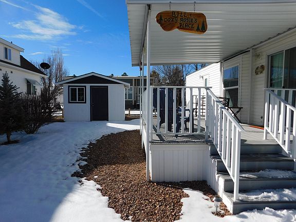 This beauty offers peace up in the cool mountains with a club house close by. This parkmodel has a/c and forced air heat. Large covered deck for relaxing. Nice clean home. The HOA includes sewer, water and trash.