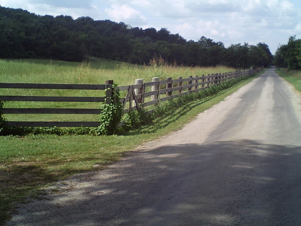 Plank fence along road, which has been cleaned and painted since the photos were taken (7/31/15)