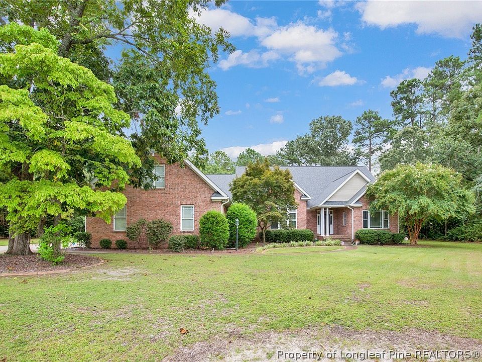 Beautiful brick home on over 2 acres in Grays Creek subdivision! 3 bedrooms on the main floor including a spacious master suite with a beautiful custom shower & dual vanity. Upstairs you'll find a large bonus room with full bath and closet that could be used as a 4th bedroom. The open concept main living area includes a private office, formal dining room and large living room compliment by a gas fireplace. The kitchen has SS appliances, granite countertops, and a prep sink with a generous amount of counter space. Sip your morning coffee in this gorgeous sunroom with lots of natural light. Hello Fall! This home has a secluded, private and wooded backyard with pristine landscaping, paved patio w/ pergola, hot tub, pool & storage shed. Home features a water filtration system and water softener system.