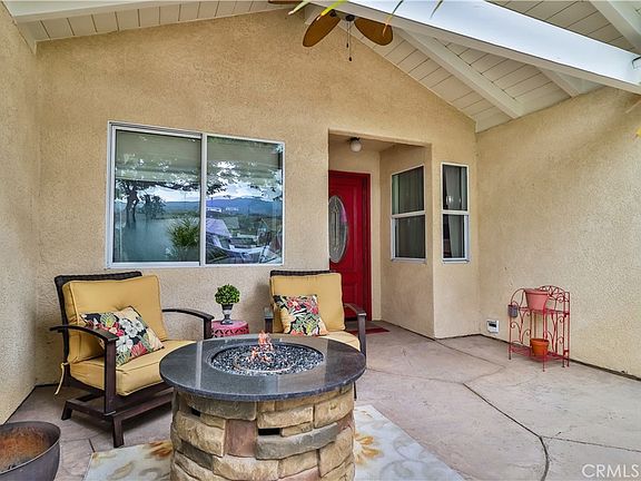Automatic sprinklers in front and back yard with a stamped concrete driveway, walkways and beautiful custom covered front porch patio cover with ceiling fan create a beautiful first impression!