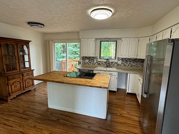 Large four bedroom home in South Anchorage featuring a living room with vaulted ceilings and a stunning wall of south-facing windows. The main area boasts a large living room and open kitchen with a large butcher block island and tile backsplash. Appliances all remaining, including Washer and Dryer. The master suite offers a walk-in closet and a private full bath. Ample space upstairs and down! The wrap around deck is perfect for enjoying the sun on a beautiful day! Close to neighborhood schools, plenty of parking, large garage, several closets...the list goes on! Pets allowed! -One year lease $3250.00 per month with $2500.00 security deposit. -Tenant to pay all utilities(Gas, Electric, Water, Trash) -Tenant is responsible for lawn care and snow removal -No Smoking indoors -Dogs allowed