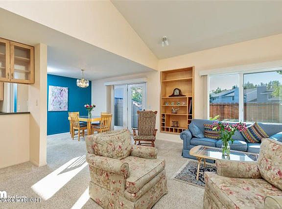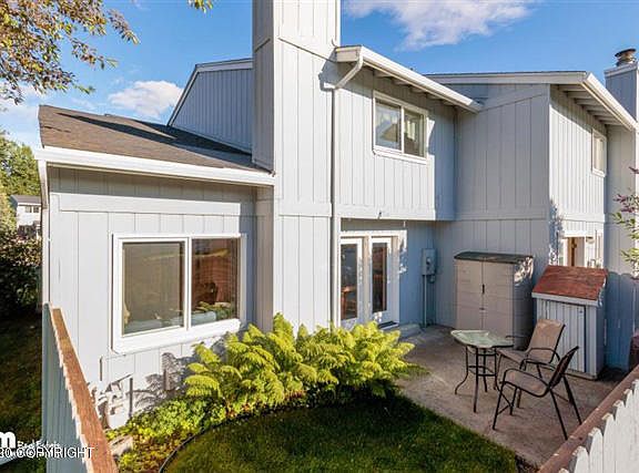 End unit at head of a quiet circle a short walk to Sitka Park & bike trail. Inviting backyard patio, small lawn, flower border, its wood fence gates to a huge common lawn area. Vaulted living on main floor, 3 BR upstairs, generous space & nice baths. Many updates include solid maple kitchen cabinets & custom wood stair balustrade, all Corian countertops, extra storage. Roof, ext. paint new 2018-19