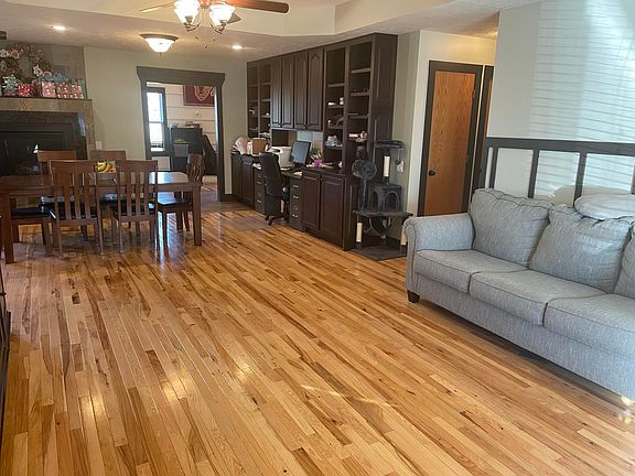 Must see 3 bedroom 2 bathroom home in a quiet neighborhood inside city limits. This is a must see home. Once you walk in the front door you will feel at home with the spacious open living/dining room combo. Both feature hardwood floors. The dining room features built in storage that is great for extra space. The large kitchen has granite countertops. The dining room also features a propane fire place that is great for secondary heat or a relaxing meal by the fire. There is also second living area with hardwood floors and built in storage. Down the hallway you will find two large bedrooms and a guest bathroom. At the end of the hallway is the master bedroom with a master bathroom. The bathroom features two sinks and a large walk in shower. The master bedroom also features a large walk in closet with an extra built in safe room for added security. This home not only has an attached two car garage but also features a detached one car garage with work station and electrical. The backyard features a covered patio with a fenced in backyard with a great view of the large vacant field behind the house. The Hvac system was replaced in July of 2021 both inside and outside. The roof is less then 1 year old and the element in the hot water heater was replaced in 2022. Call or schedule your private showing today.