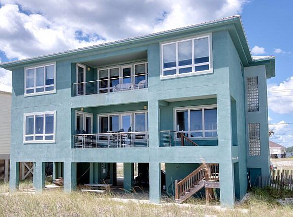 Motivated Seller!$2,000 buyer agent bonus!! Huge price reduction.Well maintained beach house with a private million dollar beach front view of the Gulf. Each room - Private bath-Foundation and exterior are poured concrete with wood frame.Finish is rubberized waterproof paint. Sealock around the perimeter of the house and Driveway which are both well protected. Windows( which open outward on the back of the house) and doors are double pane/ high impact Anderson.Amazing open kitchen with custom cabinets with multiple hidden drawers,Corian counter tops, new Bosch dishwasher, GE Self Cleaning double oven,Thermador Gas Cook top with pot filler and subzero Refrigerator.Custom entertainment built ins around the fireplace. Interior includes ceramic tile and carpet on steps and second floor. Both balconies facing the beach are concrete with ceramic tile.Both central vacuum system and gas are quick release.This home is a must see!!