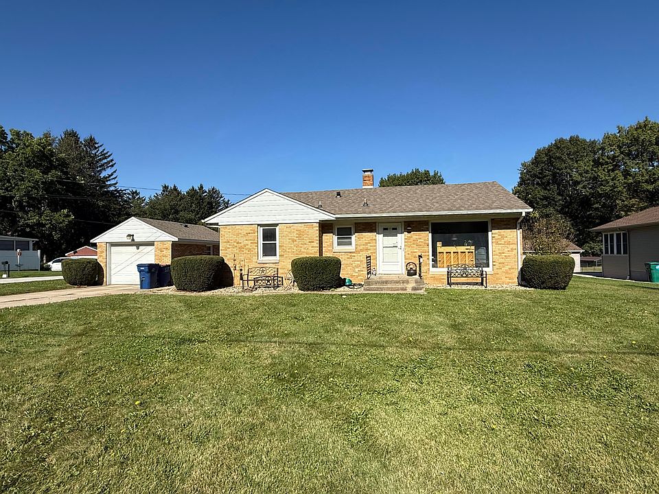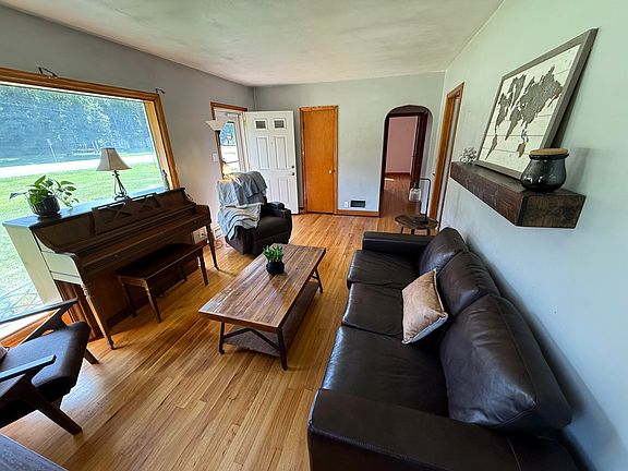 Cozy well kept two bedroom brick ranch. Large living room featuring lots of natural light and hardwood flooring. Eat in kitchen all appliances remain. Two bedrooms featuring hardwood flooring and full bath completes main floor living space. Full basement offers laundry hookup and storage. Lots of mechanical upgrades including, Nova water proofing system, new electrical box and wiring, new insulation, septic upgrade, and more. Hard to find close to town newer 40' X 34' pole building with electric and concrete flooring. This building offers endless usages. Also has detached one car garage and small storage shed. Take a look!