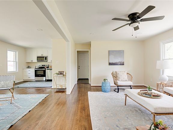 This immaculate one-level 3-bedroom brick rancher has undergone a complete renovation with high-end finishes and all new systems, including a new Cambridge architectural roof, energy-efficient windows, dual zoned electric heat pump, a gas furnace, as well as a new electric water heater. The open floor plan features gorgeous hardwood floors and fresh paint. The sunny kitchen reveals new quartz counters, custom cabinets, new stainless appliances, and luxury vinyl plank flooring. Recessed lighting and new fixtures throughout. Rest knowing that the electrical and plumbing systems have been updated to ensure safety and comfort. Two full baths showcase all new plumbing, quartz-topped vanities, modern tile, and showers. Doing laundry will actually be a pleasure in the dedicated laundry/utility room. Step outside to discover a concrete patio, just in time for summer BBQs, as well as a detached two-car garage with new siding, windows, and roof. Move right in and enjoy carefree living for many years to come!