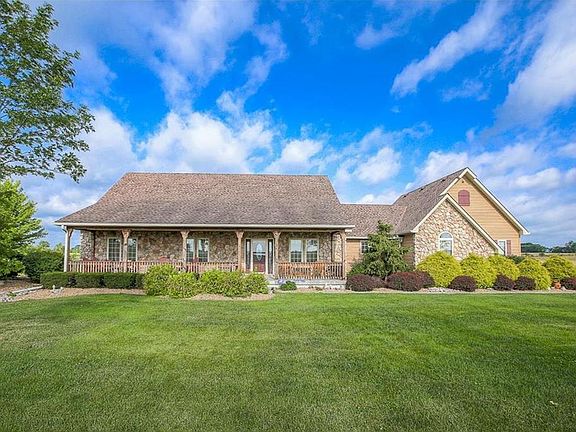 42 ACRES M/L. All open kitchen/dining. Great room has see-thru fireplace. Quality built 6" exterior walls. 9' high ceilings. Quality oak wood trim, crown molding. Lots of cabinets in gourmet kitchen. High quality fixtures. High end appliances, granite counter tops, large island. Basement has 9' walls, lots of windows, high quality finish. Outstanding 108x108 outbuilding with 36x50 insulated heated shop, 16x24 office w/bathroom & an office or apartment above + 8 horse stalls. 2018 barn doors installed. Roof in 2017. New lighting in arena. Land has some crop ground, pasture and 2 ponds. Road frontage on Harper Road and 227th Street. 2021-03-10