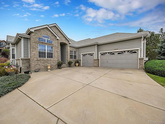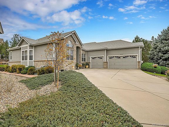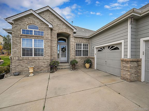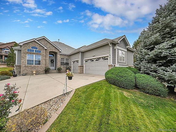 Welcome to 22416 East Roxbury Place, a stunning ranch set on a tranquil 0.33-acre lot in the desirable Saddle Rock East! Framed by lush greenery, an expansive driveway offers premier privacy, ample guest parking, and an impressive three-car garage. The foyer opens to the home’s bright, open floor plan, featuring a stunning front office and formal living room perfect for welcoming guests. Soaring vaulted ceilings, recessed lighting, and Brazilian Cherry hardwood flooring lead into the spacious family room, complete with elegant built-ins and a cozy gas fireplace. The chef's kitchen boasts rich wood cabinetry, Corian countertops, a gas range, double ovens, and a porcelain backsplash. A bright breakfast nook overlooks the generous backyard, while the formal dining room is bathed in soothing light from a bay window and elegant chandelier. The main-floor primary suite is a private retreat with vaulted ceilings, a two-sided gas fireplace, and direct access to the patio and backyard through sliding glass doors. The en suite 5-piece bath features a jetted soaking tub, glass stand-up shower, and walk-in closet. A second bedroom and full bath offer privacy for guests, while a convenient main-level laundry room makes chores easy. The fully finished basement is perfect for entertaining, with a large eat-in bar, spacious kitchenette, and a flexible space for a media room or home theater. An additional bedroom and flex room share a full bath, offering privacy and comfort. Outside, enjoy a raised concrete deck and a large, meticulously maintained yard—perfect for outdoor living. The roof was recently replaced in 2024 for added peace of mind. Conveniently located just minutes from Saddle Rock Golf Club, Arapahoe County parks and trails, and E-470. A stone’s throw from Saddle Rock Village and Southlands Mall, offering the best of Southeast Aurora shopping, dining, and entertainment.