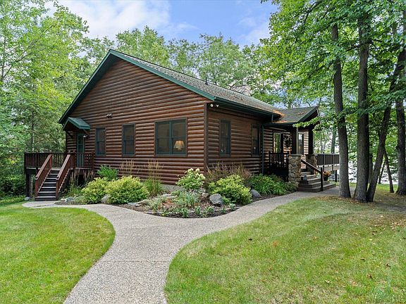 Welcome to 22416 S Shore Drive! This immaculate 3 bedroom, 3 bath home includes approximately 3,000 finished square feet of living space and has a modern “Up-North” feel. The main floor features an open floorplan with a spacious living room with a wall of lakeside windows, vaulted wood ceiling, stone fireplace and beautiful hardwood floors. There is also a kitchen with stainless steel appliances, center island and tile floor, a primary bedroom suite with private bath with separate tub and shower, second bedroom and main floor laundry. Enjoy the outdoors and fabulous views from the comfort of the four-season porch or large lakeside wrap-around deck. Downstairs you will find a family room with stone gas-burning fireplace, bunkroom and wet bar plus walk-out access to the lakeside yard and firepit. The lower-level floor is comprised of LVP plank flooring for a nice finish and is perfect for the in-floor heat. The detached 2+ car garage is ideal for extra storage space.   Set on a private 1-acre lot with 157 feet of shoreline on Mary Lake, this property is conveniently located close to the city of Emily and numerous area lakes. All this and so much more makes this property the perfect place to create memories…where outdoor beauty and “Up-North” lake living meet.