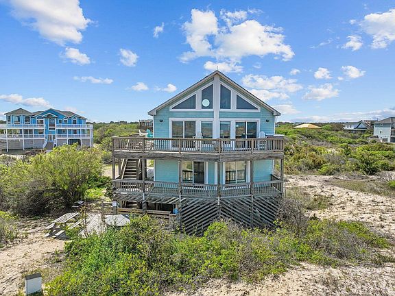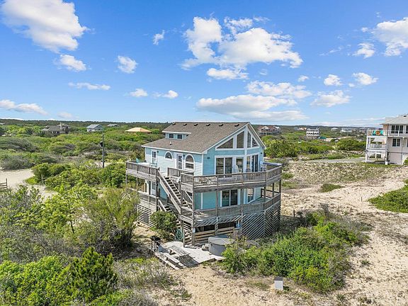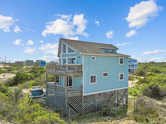 This is a rare chance to buy a five-bedroom oceanfront home on the Outer Banks for less than a million dollars and has a projected 13% ROI! This adorable beachfront property can be found beyond the main roads and roughly a 10-mile ride on the 4x4 beaches! If you enjoy leisure, stunning surroundings, and a lot of privacy, this house is for you. Even before you enter the house, you'll be captivated by the large decks that run the width of the house on the ocean side and the length of the south side and by the outdoor hot tub area where you can enjoy the sounds of nature while watching the wild horses wander by. With proper permits, the lot may even provide room for a pool! Inside, you'll be charmed by the nautical decor, the abundance of natural light, and the recently updated furniture that provides a fresh coastal vibe. The first of the five bedrooms is located on the ground floor. Ascending to the second floor, you'll come across one en suite bedroom with access to the deck, two bedrooms that share a fully updated bathroom with a dual vanity, and a separate living space with a fireplace. The main living room is on the third level, which has huge windows and sliders to let in plenty of natural light. On this floor is the kitchen, a dining room, a half bathroom room that has a washer and dryer, and a bedroom with an en suite bathroom. The last set of stairs takes you to a bonus loft area currently used as a sleeping nook that boasts amazing ocean views as well as views to the living room below. This updated and fully furnished beach house is turnkey ready for use as a primary residence, second home, or an income-producing rental property. Please be sure to check out the virtual tour of this property by copy/paste into your browser: https://my.matterport.com/show/?m=ViR2AiMtsFd&mls=1