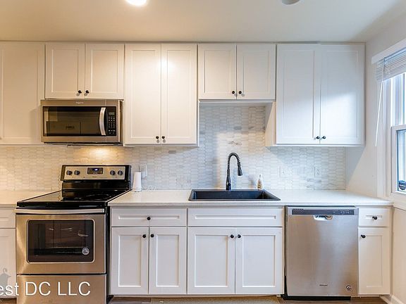 Bright Rowhome in Brentwood! - This gorgeous 4 bedroom, 2.5 bathroom rowhome spread across 3 levels truly is a gem! Step into this newly renovated home, with standout grey wood floors and large windows that let in tons of natural light. The first floor flows wonderfully from the front living room to the back kitchen and dining area. The beautiful kitchen offers tons of space. It has a fabulous tiled backsplash, stainless steel appliances, everything you need for all of your culinary creations! The main floor is rounded out with a half bath, and door that leads to a small deck and backyard (that includes an off-street parking pad!). On the second floor, you'll find three bedrooms and a main bathroom, each bedroom has lots of natural light. Head downstairs to the finished basement, with a spacious living area perfect for hosting a game or movie night, and another bedroom and full bathroom. The location offers tons of flexibility to your day-to-day routine. With the Red Line only a few blocks away, you can ditch your car and get all over the city with no problem. Giant is nearby as well for your grocery needs, and Home Depot is just as close if you want to add your own touches to your new home. Head over to Brookland for brunch at Brookland's Finest or across the street to Menomale for the best pizza in town! A security deposit equal to one month's rent is due upon signing a lease. Tenant responsible for gas, electric, and $100 monthly flat fee for water. Pets will be considered on a case-by-case basis! Nest DC happily accepts applicants whose rent is paid either in part or in full via rental housing assistance provided by the District or federal government. (RLNE6520403)