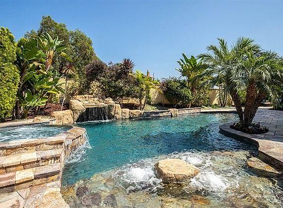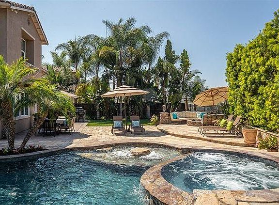 If this house doesn't check all the "Dream Home" boxes, nothing will. 5 BR, 5.5 BA, loft, detached casita w/BA, 3 car garage, end location, cul de sac, 1/4 acre lot, salt water pebble sheen pool/spa/grotto/baja step w/bubblers & umbrella holder, BBQ island/bar, sun deck w/fire pit, grassy area for kids/pets & golf course views. House/pool are solar (owned) & security system w/cameras you control via smart phone. Awesome floor plan + kitchen with built in Pro SS appliances...Don't blink or you'll miss it! Luxurious coastal retreat on 1/4 acre view lot w/open golf course vistas. Upgrades include Plantation shutters, wood floors. Impressive 2-story Great Room w/ tray & wood beam ceiling & surround sound. Chef's Kitchen w/ Thermador stainless steel built in appliances, granite counters & huge island/breakfast bar and nook area that opens to rear yard through French door. Detached casita with private bath plus 1st floor guest suite with private bath. Private Master Suite w/panoramic golf course views & spa-inspired bath w/ his & hers vanities plus two walk-in closets, large soaking tub and walk in shower. All this plus the La Costa Greens community pool, workout room, party room, tennis courts & more!. Neighborhoods: La Costa Greens Complex Features: clubhouse, swimming pool, private playground for residents only.