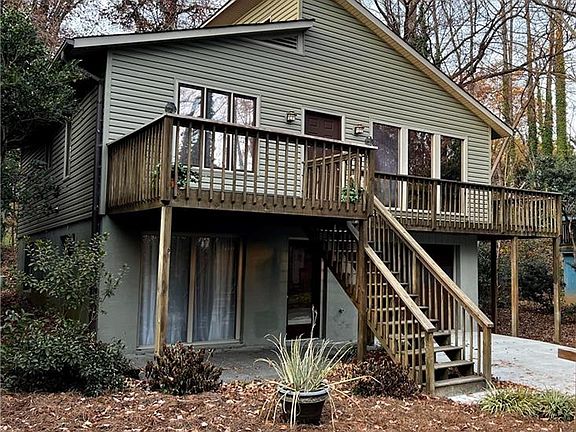 Nice contemporary 2BR/2BA home with open floor plan convenient to shopping, dining, and hospitals. This home has lots of natural lighting from the all the skylights, windows, sliding doors and vaulted ceilings. There is a one car basement garage and a brand new wide concrete driveway. This home features lots of recessed lighting, surround sound, jetted tub in the master bath, beautiful stone fireplace, and gas logs. There is plenty of outdoor entertaining/living space with the large wrap around deck and privacy from mature trees. Both bedrooms have attached bathrooms and there is plenty of storage with walk-in closets in both bedrooms and one in the living room. Neighborhood Pool included in HOA fees.