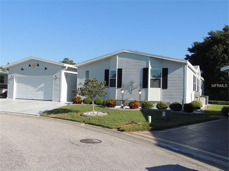 1995 Palm Harbor 2 bedroom 2 bath home with 2296 square feet with a 2 car garage, oversized walk-in closet. This home overlooks a lake that backs up wooded area full of wildlife and great views in the Cypress Lakes community on US North 98. Extremely spacious home with screen lanai to enjoy watching deer drink from the pond the while sipping on your morning coffee and then watching the beautiful Florida sunsets in the evening. Community features 2 golf courses, 2 swimming pools, 2 hot tub/Spas, fitness center with Nautilus equipment and a full time fitness instructor who conducts many different types of classes including zumba. yoga, line dancing water aerobics. Tennis courts, bocci ball and horseshoe pits also available for you entertainment. Clubhouse has array of entertainment and activities daily. Security provided 24/7 by a manned guard gate. Included in the sale of the home is golf cart ,which is your preferred method of transportation throughout the community and a washer and dryer. Garage also provides many opportunities for storage. Separate golf cart path that leads to it's own small overhead door for easy entrance. Priced just right. If you are looking for a active community with state of the art amenities at an affordable price look no further. If you would like to take a tour of the community an appointment is required. All room sizes are approximate. Roof was replaced with 30 year shingles in 2004. Sellers will provide a one-year home warranty w/purchase.