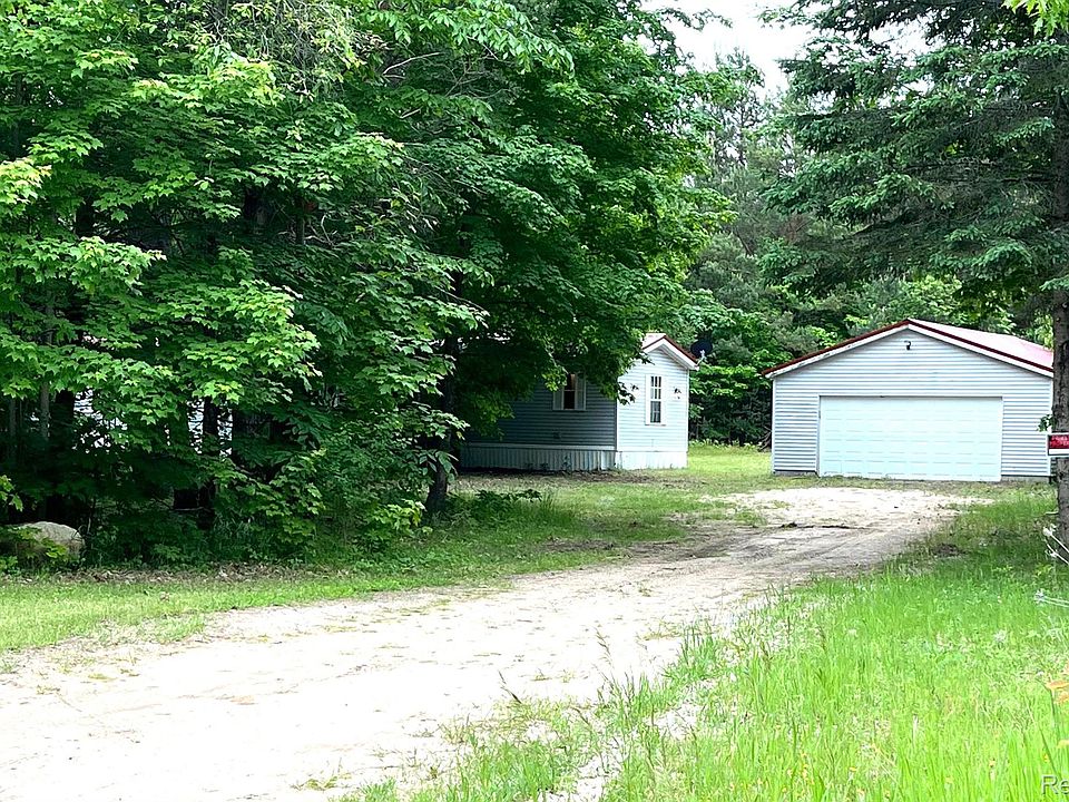Open airy design, large lot, large cabinets for lots of storage, detached two car garage (with electric), small fenced in area outside, perfect for investment, small family or up north property. Features many updates; Laminate flooring throughout (2019), Metal roof (2019), Hot water Heater (2019). Home is situated on a partially wooded lot and hidden off the main road. With-in walking distance to state land and Woodward Lake. Appliances include Fridge, Stove/Oven