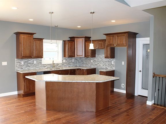 New home by Matt Breiner Construction just completed in Clay Ridge. Over 3100' of finished living area in this 4 Bedroom, 3 1/2 Bath walkout ranch. Other features of this level entry home are island style kitchen with granite tops, tiled backsplash and large walk in pantry, master suite with tiled shower and soaking tub, 11' elevated entry foyer, large deck, fireplace in family room, 9' sidewalls and main floor laundry. The home is trimmed in white and has hardwood floors in dining room, living room, foyer and halls. In the completely finished lower level there is a large family room, bedroom, full bath, video gaming room/theater room and a 4th utility garage.