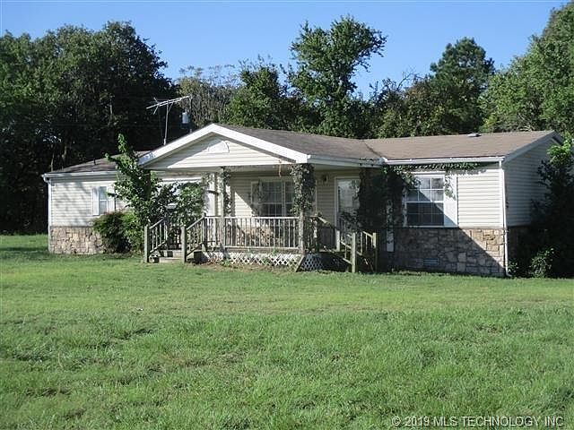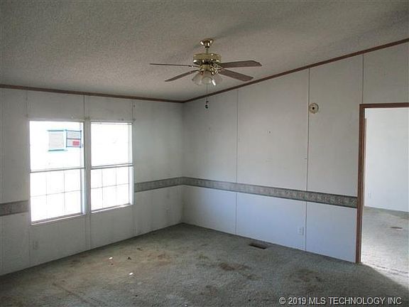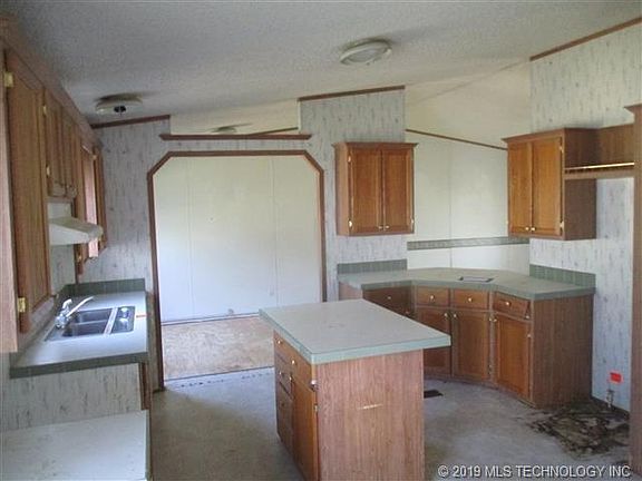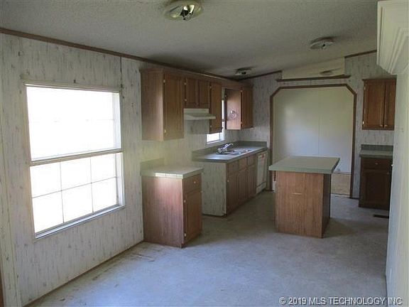 This 3 bed 2 bath mobile offers a covered front deck, a split floor plan, offering 4 acres m/l, 2 dining areas, 2 living areas, master bed has separate walk in closet & private bath with double vanities, separate shower & tub. Large barn, large shop, and 2 outbuildings. Kitchen has center island, pantry. Inside utility.