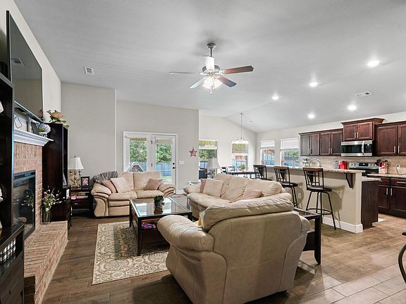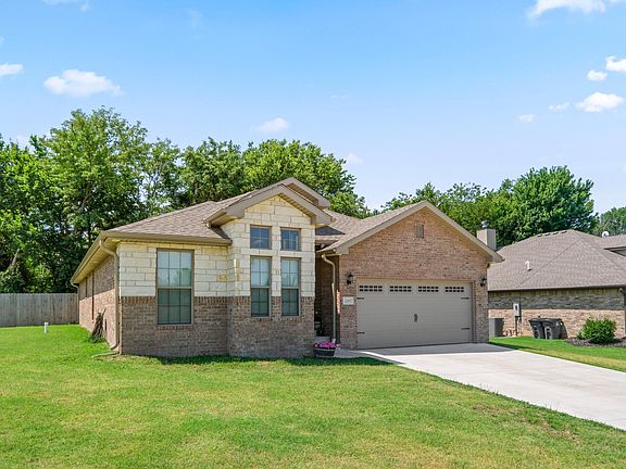 Come home to this beautiful brick & stone home in Oronogo! With over 1750 square feet of living space and 10 foot ceilings, this 3 bedroom, 2 bathroom home offers a great open floor design! With a spacious living area and fireplace for ambiance and warmth on those chilly evenings. Kitchen features granite counters, custom cabinets, and glazed porcelain tile flooring throughout. Host gatherings with friends around the kitchen island, with recessed lighting, a walk-in pantry, and an entrance to both the dining and utility rooms. Included is a covered back patio and an attached 2-car garage. All within Webb City school district, which makes this home a must-see!