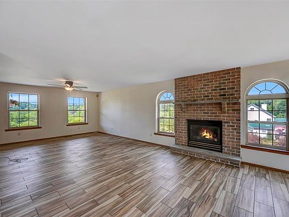 Open House this Sunday 6/30 from 12-2 at This Huge Move-In-Ready Colonial Home w Beautiful Covered Porch and Mountain Views in No-HOA Effort Neighborhood! Perfectly perched on a choice property, this 4+ bedroom home w finished basement offers easy access to Route 33 towards the Lehigh Valley, conveniences in downtown Brodheadsville and summertime fun at Camelback Mountain and Pocono Raceway. Paved drive adjoins oversized 2+ car garage and additional detached garage for toys. Inside, find ultra-spacious floorplan offering newer wood-look tile flooring, propane fireplace and large windows that allow for lots of natural light. Separate formal dining room is great for entertaining and breakfast area off kitchen is ideal for daily life. Laundry conveniently on main level. Upstairs, find dual en-suite bedrooms on each end of the home including enormous primary bedroom w vaulted ceilings, walk-in closet and full bath. Four true bedrooms and additional smaller room at front is the perfect 5th sleeping space or home office. Downstairs, fully finished basement exits to side yard at ground level and offers an awesome playroom or activity space. Outside, backyard has plenty of room to run around including massive side yard (to right of home beyond driveway) and in wooded clearing that backs to stonewall border. Central Air and new roof in 2022. Very Few Properties Available At This Size & Price In This Location - Do Not Delay - Call to Schedule Your Private Tour Today!
