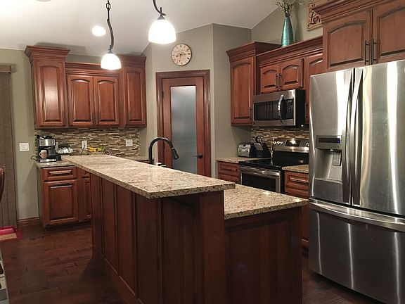 Newer ranch walk-out on Dubuque's west end offers 4-5 bedrooms 3.5 baths and a 3-car attached garage. Vaulted ceiling and open floor plan allows for easy entertaining. Kitchen features cherry cabinets, granite counters, large pantry and stainless steel appliances. Large 14x16 deck off dining area w/patio below. Living room features gas fireplace w/built-in cabinets on each side. Locker area near garage will help keep you organized. Beautiful master suite features double tray ceiling, master bath offers tiled shower, dual vanity and large walk-in closet. Lower level is finished with 9 ft. ceilings and features family room, 4th bedroom and bath plus large exercise room which could be 5th non-conforming bedroom if needed. Built-in stereo system with speakers in living room, master suite, bathroom and back deck. Level backyard w/several fruit trees and landscaping. There's nothing for you to do but move in! Quick possession possible.