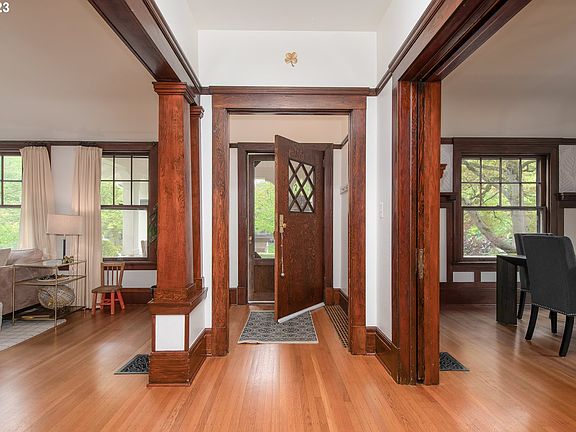 Presenting a fashionable and functional craftsman in the heart of the historic Irvington District. Large open spaces and precise details define this architectural masterpiece. Featured on the "Irvington historic home tour" in 2021, this property is one of a kind. Built on a corner lot set back from the street, the home is accompanied by unique landscaping and a covered front porch with swing. The main floor features wood floors throughout, built-ins, picture frame rail molding, window seats, and has a practical floor design. Open kitchen with generous island, dark marble countertops, stainless steel appliances, and attached butler's pantry. French doors go outside to the natural wood deck and covered brick patio which feels completely removed from city living. To the right of the kitchen is a multi-purpose family room with one of three fireplaces separated from the traditional entry, living, and dining areas. Upstairs you will find an oversized and refreshed primary suite. Three additional bedrooms on the second floor and two bonus bedrooms on the third floor provide no lack of living area. Finished basement with guest bedroom and bath, tv room, and plenty of storage space. ATTACHED IS AN ARCHITECT DESIGNED DOUBLE GARAGE, a rare find on a home of this elegant age. Live in luxury comfortably and entertain impressively. All this across the street from Irvington Tennis Club, you don't want to miss it!