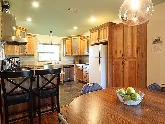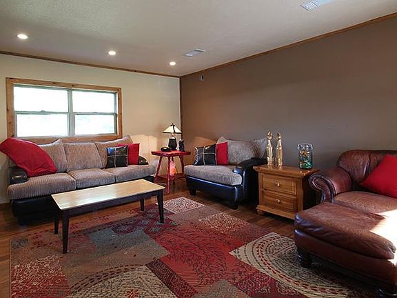 Modern ranch makeover in 2011-12. Updates include bamboo floors, cedar trim, paint, windows, on demand water heater, surround sound wiring, stainless appliances, farm sink, vaulted master wtih 2 walk-in closets. Co-op water, well, closed in back porch, views of rolling pasture and ponds. Fenced yard. Also available: up to 35 + or - additional acres MLS# and 4-3-2 on 40 acres + or - MLS# 11754958