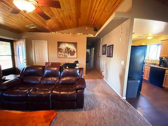 GREAT FULL TIME HOME OR WEEKEND CABIN. 2 BEDROOMS, 2 BATHS, LAUNDRY ROOM. LARGE LIVING ROOM WITH VAULTED CEILING, GAS FIREPLACE. KITCHEN WITH ALL APPLIANCES AND LOTS OF CABINETS. BOTH FRONT AND BACK COVERED DECKS AND LARGE STORAGE SHED . BACKYARD IS FULLY FENCED.