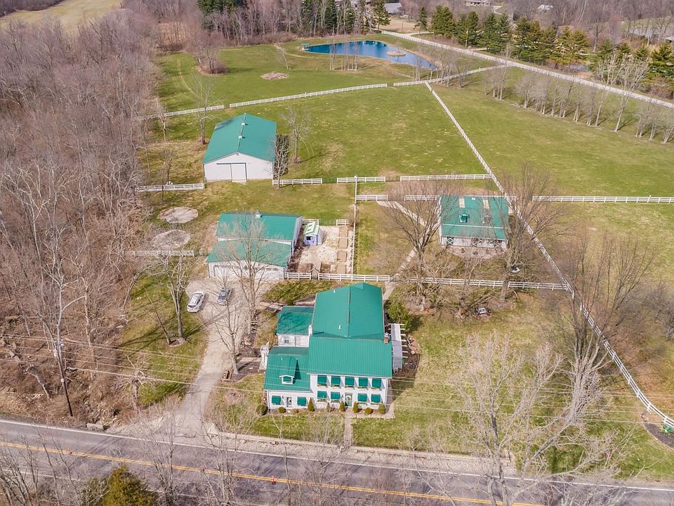 Incredible horse property with indoor arena! Iconic calypso farm is conveniently located on US 50 just outside of Owensville OH. This 3300 sq ft home is full of charm and also has an attached apartment. Located just 35 mins from World Equine Center! Paddocks, pond w/ island, master w/ walkout balcony! Tile floors, marble bathroom, truly exquisite!