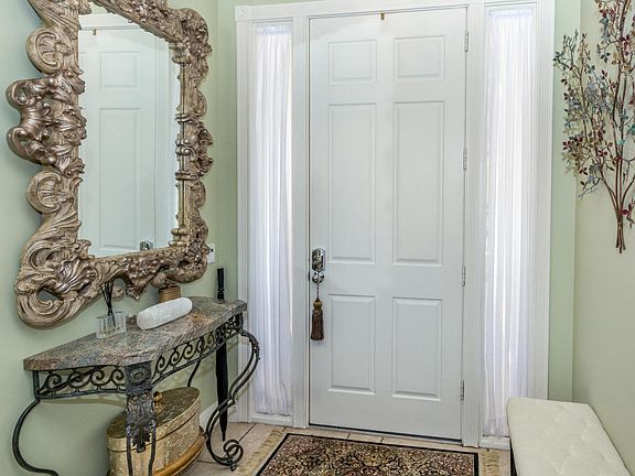 An exquisite Windsor Model with 4 bedrooms & 3 Full Bathrooms. The Formal Living Room greets you when you enter. Upgrades include Crown Molding throughout, Custom Draperies, Hard Wood Flrs in both ''Master'' Bedrooms, 24'' Marble in the Master Bathroom, Saturnia Marble Shower & Custom Window Treatments finish the look. Stone look tile in the main living areas. The Formal Dining Room with built-in shelving will showcase your beautiful china & furnishings. The Chef's Kitchen with White Cabinets, Granite counters & Newer Stainless Steel Appliances will make cooking a breeze. There's a walk-in pantry, too! This home is built for entertaining! The kitchen/family room flows nicely to the covered patio with handy Summer Kitchen. The yard & pool face East for sun all day long!