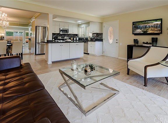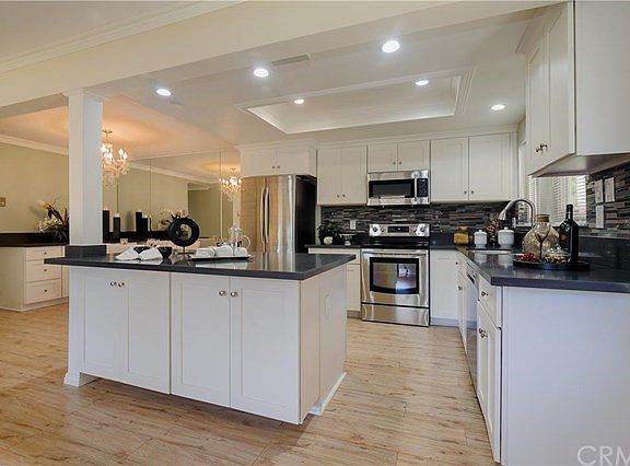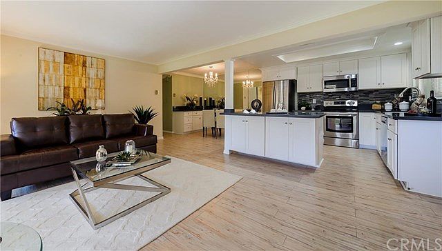 Settled at the end of pristine park like green belt, this exclusive Laguna Woods residence offers the ultimate in easy accessibility, located on ground level, and no stairs or elevators. Featuring new luxurious culinary accouterments, the kitchen includes new appliances, new custom cabinetry, gorgeous quartz counter tops, and designer back splash. Recessed LED lighting and elegant faux wood flooring throughout with sumptuous designer paint, this amazing home provides exquisite detail. New quartz counter tops in bathrooms as well as sinks, faucets, dual pane windows, and sliding doors complete this masterfully designed home. The living areas radiate natural light providing a serene, comfortable environment. Additionally highlighting the property is the unique porch area providing a relaxing area to enjoy BBQing or relaxing outdoors while remaining private. Carport is close to unit and is an end parking space. Enjoy the rewards of retirement and the exclusive community amenities in your new Laguna Woods home!