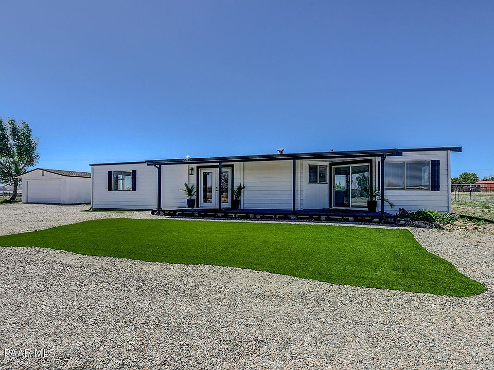 You must see this impeccably remodeled home on 2.47 acres in Paulden on a paved road! It features 3 bedrooms,2 bathrooms, a split floorplan, a detached 2 car garage (20x20), and 3 very nice / well built horse corrals that are 30x50. Two of the corrals have shade structures, and there is plenty of room to add a barn and an arena. This home has been completely remodeled down to the studs. This includes (but is not limited to): PEX plumbing, new drywall, a new well pump, a new roof and new LED lighting throughout the home. The kitchen is beautiful with new appliances, shaker style cabinets, butcher block counter tops, and a farm sink with drying rack and cutting board. The laundry room, mudroom, and bathrooms are also a must see!
