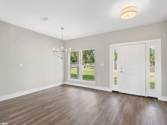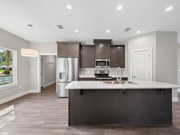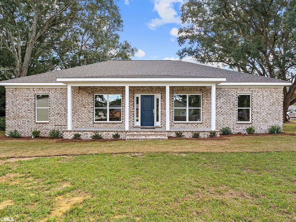 Brand new gold fortified custom built house ready for you to move in and make it your home. Situated on a large, corner lot where you can sit on your covered front porch to enjoy your morning coffee and then move to the back porch for evening grilling. Features an open floor plan with both a breakfast nook as well as a dining area. The kitchen has beautiful real wood cabinets and a full GE appliance package with an upgraded refrigerator. The large primary bedroom and bathroom feature his and her walk-in closets, double vanity, walk in shower and a soaking tub. There are 9 ft ceilings throughout and ceiling fans in every bedroom, as well as living room. Having energy efficient vinyl windows and all of the lights being LED will help save on your electrical bill. Come see this low maintenance home within walking distance to Robertsdale Elementary School before its sold. This new home will come with a 1 year home builders warranty as well as a transferable 2-10 warranty.  Listing Agent is related to Seller