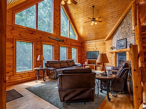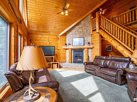 Welcome to 22421 N. Crew Ln, Sparland, IL! This custom-built log home is secluded on 6 acres with beautiful landscaping and a private circle drive. Preparte to be awed by a great room adorned with a vaulted ceiling and wood-burning fireplace, a large Chef's dream kitchen with a large breakfast bar, 4 bedrooms and 3.5 baths. The main floor also has a large primary suite, laundry room, and office. Upstairs, there are 2 bedrooms a full bath and the open loft overlooking the large vaulted ceilings to the huge picture windows of the great room. Downstairs, you'll find a finished walk-out basement with a family room, kitchenette and bedroom for plenty of additional room. Storage abounds with a basement storage room and lofted bonus room above the garage. The outside of the home features a large back deck, covered patio and lots of beautiful surroundings. Recent updates include kitchen appliances, water heater, garage door opener, driveway rock, and roof. Don't miss out on this amazing home with privacy and convenience to town.
