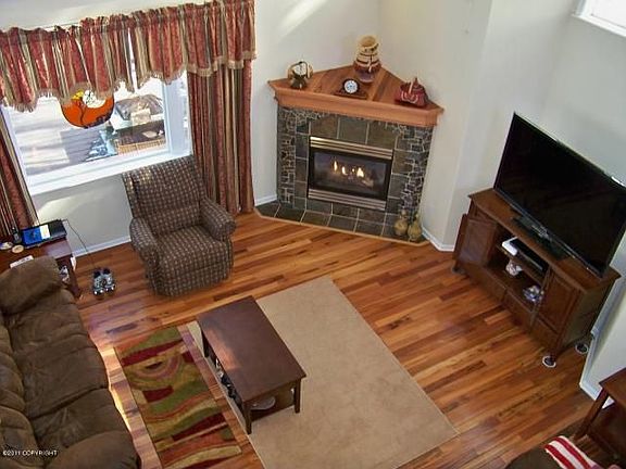 Seller offering $10,000 towards buyer closing cost.. Exterior just painted, fenced back yard, RV Parking, Shed w/electricity & OVER-SIZED 2 car garage. Let the sun shine in this beautiful home! High windows allow plenty of natural light, beautiful high ceilings,3/4 inch Brazilian Tigerwood flooring, Corian counter-tops, open kitchen to large family room w/fireplace Brokered And Advertised By: Real Estate Brokers of Alaska Eagle River Branch Listing Agent: Hope L Russo