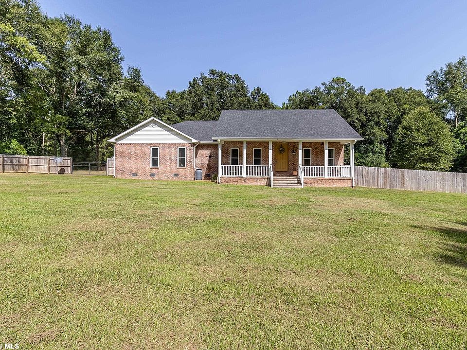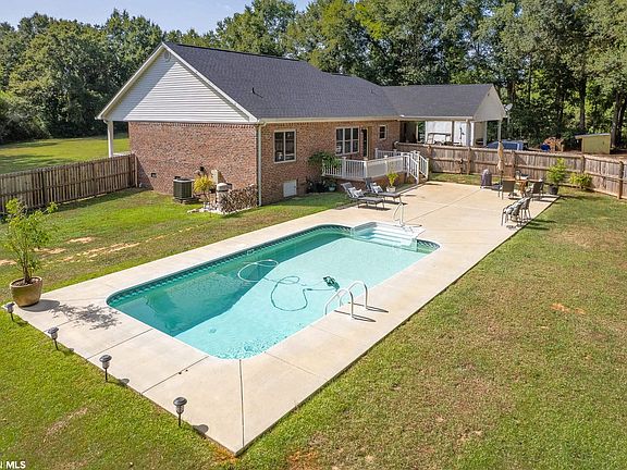 Sales Price Reduced $30,000! Ultimate Privacy in this adorable farmhouse on 3 acres! None of the neighbors can be seen from the home. Yet Ard Rd. is close to schools, churches, I-10, and the beaches! The deeded access was resurfaced in 2021 along with newly installed wood-look porcelain tile floors throughout, granite counters in kitchen and baths, stainless steel “café” appliances and 6’ privacy fencing for the pool. Also, at that same time the crawlspace was Encapsulated for $22000. Then in 2022 a saltwater pool with an oversized concrete patio was installed, pumped septic tank, Fortified roof and a new 20x21 storage barn building. Finally, the owners put in hurricane impact windows throughout the home. “Modern Air” has a service contract on the HVAC and a new condenser and fan mower were recently put in. The HWH is 3 years old and having the use of well water for the pool and gardening has been a dream. There is an additional 2 car cover structure along with the oversized carport plus a 10x10 storage building for the lawn equipment. The split bedroom plan includes the primary bedroom with an en-suite bathroom including double sinks, 2 Walk-in closets, garden tub and separate shower. The separate formal dining room could easily be converted into an office or playroom. Home has 9' ceilings throughout. All in all, this location is to be envied! One can enjoy both the sunrise on the back porch overlooking the pool and the sunset on the 35x8 ft. front porch. This can be your dream home plus all the work is done! All Information provided is deemed reliable but not guaranteed. Buyer or buyer’s agent to verify all information.