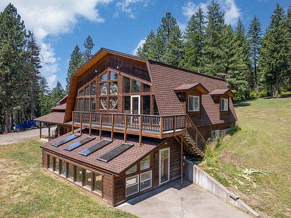 What an opportunity to own a unique custom build home in the mountains with multiple shops and out buildings. Daylight fills the space. It is 3 stories of open post and beams. Enjoy the hot tub followed by the sauna with a Himalayan salt floor. This home could be turned into a 4 bed room. Bonus 2nd well by garage needs pump to operate. 2nd source of heat is in the 850 sq ft attached garage is a wood burning hot water heating system holds 3 foot logs. Why is this home priced below market value? Roof is 3 years old. School bus route. Close to hiking, mountain biking, skiing. 28 min drive to the Valley.
