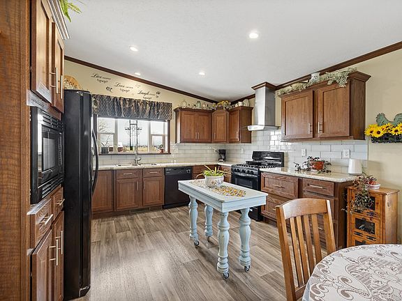 Listed by Jeremy Kahler, KWBH, 605-381-7500. Opportunity is knocking- bring your horses to this cozy ranchette on a flat 3.5 acres with NO COVENANTS, located just northeast of EAFB! *Built in 2018, this one level ranch style home offers 3 bedrooms, 2 bathrooms and 1,512sqft *A comfortable living room welcomes you in, accented by large windows, great natural light and subtle vaulted ceilings *The spacious kitchen offers ample cabinet and counter space, black appliances and a window overlooking the front yard *Nearby dining area for meals *Master bedroom in back corner of the home for privacy, complete with a 13'x5' walk-in closet and an ensuite bathroom with dual vanities and a custom tile walk in shower *2 additional bedrooms, 1 full bathroom and a convenient main floor laundry room with 2 closets and a utility sink complete this home *Outdoors is an entertainer's dream- host get togethers with ease on the the impressive 16'x20' deck with separate seating areas and space (and hookups!) for your hot tub *Part of the property closest to the home is privacy fenced- great for kids or pets, and has pebble rock throughout for easy maintenance *Oversized detached garage is 38'x26' and has a separate workshop area, built-in storage shelving plus ample vehicle parking space *Home is a modified manufactured home, and is appraised as a stick built property that sits on a full approved foundation. Located a few minutes from EAFB or an easy communte to Rapid City, call today!