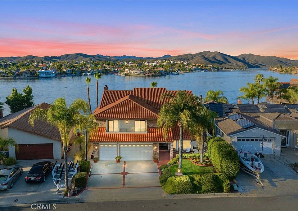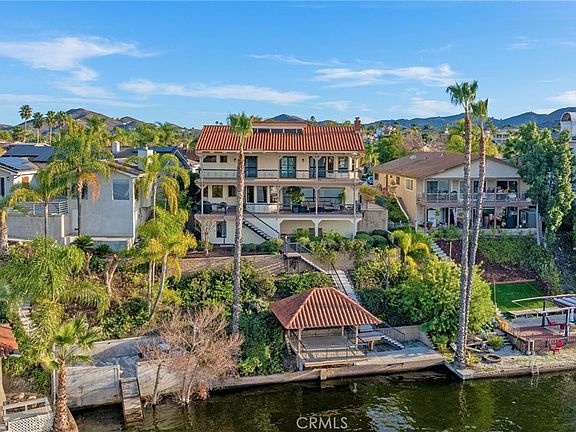 Location, Location, Location! BRAND NEW BOAT DOCK with cover and electrical will be installed soon! Discover unparalleled luxury in this 3856 square foot waterfront retreat that has never been on the market before!! Situated on the main lake in the most desirable position on the water, this 4-bedroom, 3-bathroom haven boasts stunning unobstructed views and unforgettable sunsets! This gem features a formal entry and a formal living and dining room with a wood burning fireplace. The formal dining room leads to the kitchen with dead on water views! The kitchen has plenty of countertop, cabinet and storage space, including a large pantry and leads to a second dining area and talking room. The sunken family room features tall ceilings with open beam detail, a wet bar and a large wood burning fireplace with Mexican burnt bricks. From the family room to kitchen to dining area and talking room, every corner has gorgeous main lake views! A ¾ bathroom and laundry room complete the first floor. A grand staircase leads you upstairs where you'll find a huge loft/room with another wet bar and a balcony. This room can easily be converted to a 5th bedroom! The spacious primary suite has, again, unobstructed views and the primary bathroom features dual closets, a separate linen closet, a sunken tub and step in shower. There are 3 additional bedrooms upstairs, another with direct bathroom access and one with a walk in closet. 3 of the 4 bedrooms share a large deck, spanning the length of the home, all overlooking the water. The backyard will not disappoint. There’s a covered deck/sitting area and plenty of room to build a pool or spa, another level below features 2 separate chilled wine rooms. Going down a few more stairs you’ll get to the waterfront gazebo and area where you can install a boat dock! This home also features a 3 car garage and a flat driveway. This enclave offers not only a scenic retreat but also a range of amenities for residents to indulge in. Whether it's a day on the lake, a walk in the community, or a night under the stars on your terrace, this home promises a life less ordinary. Canyon Lake is a 24 hour guard gated community with a private 525 acre lake, premiere wakeboarding and waterskiing, 18 hole SCGA rated golf course, Lakefront pool and clubhouse, Lakeside RV park, Equestrian center, tennis, basketball & pickleball courts, baseball fields, 4 beaches, 9 parks, a bicycle pump track, Senior Center, over 40 clubs to join and so much more!