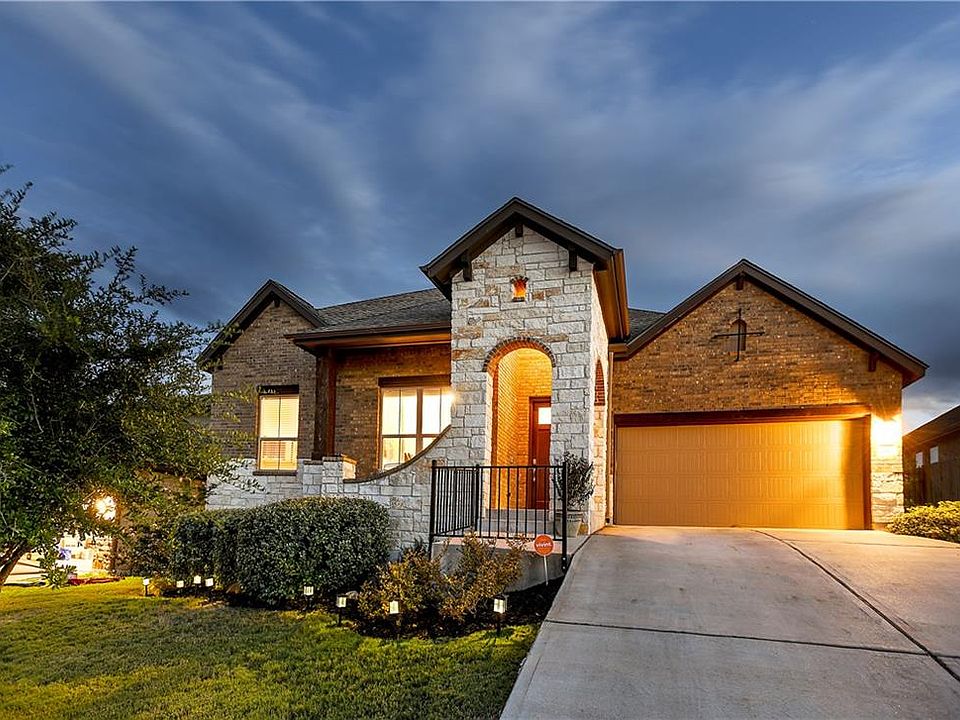 Gorgeous Hill Country Modern Craftsman home offers 3 bedrooms + spacious office AND huge living space w/ full bath up stairs. Upgrades galore! Hi ceilings, hardwoods, gas fireplace Chef's paradise kitchen! Dbl Island, Dbl Oven. SS appliances. Gas cooktop. Granite countertops. Kitchen opens to covered outdoor deck and level yard backing to native green space. Enjoy Texas sunsets and hill country views from front porch. Private master retreat featuring luxury bath and large office are located on main level. The generous upstairs media room can easily function as private guest suite since it offers a full bath. Located in the desirable West Cypress Hills neighborhood in with exemplary LTISD elementary school within the community. This master-planned Spicewood community features a resort-style pool, playgrounds and sport fields.