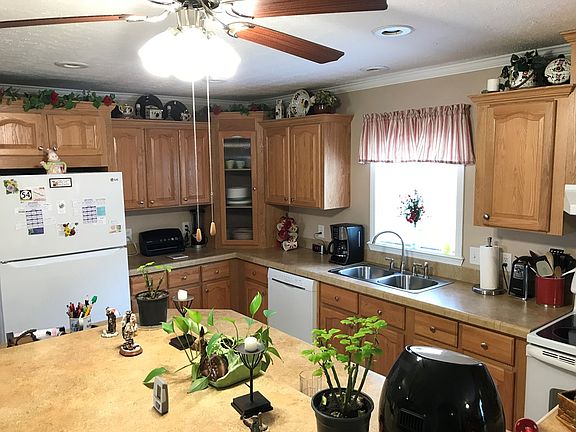 This 3 bed, 2 bath home has a kitchen you will love! Lots of oak cabinets and large island/bar with electric open to the living room with a beautiful stone, gas log fireplace! Large master suite with walk-in closet and large master bath. Crown molding throughout, 6" outer walls, and insulation has been added in the attic and floor. Outside, you'll love the 5 acre lot with huge 30 x 40 shop, stocked pond, and a front porch to enjoy the scenic views. You will want to see this home and all it has to offer!