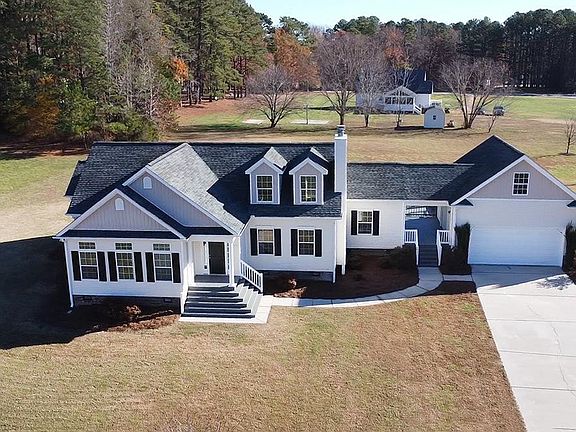Newly remodeled, move-in ready, 4 bed/ 3 full bath, 2800+ sq ft home with 2-car garage, concrete driveway, bonus room, & work-at-home office on 1.78 acres! If you need more space, this home has it all! Natural sunlight & space to entertain abounds both inside & out. The bright, beautiful kitchen showcases new quartz countertops, kitchen island, desk, tile backsplash, breakfast nook, & formal dining. Kitchen opens to the massive deck waiting for your next large, party gathering. New hardwoods, new flooring, & new paint throughout. Main floor, primary bedroom with trey ceilings, hardwoods, & ensuite. Wood-burning fireplace in large living room with open-concept. Second floor features huge bonus room, dedicated office space, & 4th bedroom with its own spacious bathroom. New HVACs for both floors. Large yard, massive deck, & covered porches invite outdoor living & entertaining. Quiet country living with easy access to Wake Forest, Raleigh, Durham, & RTP.
