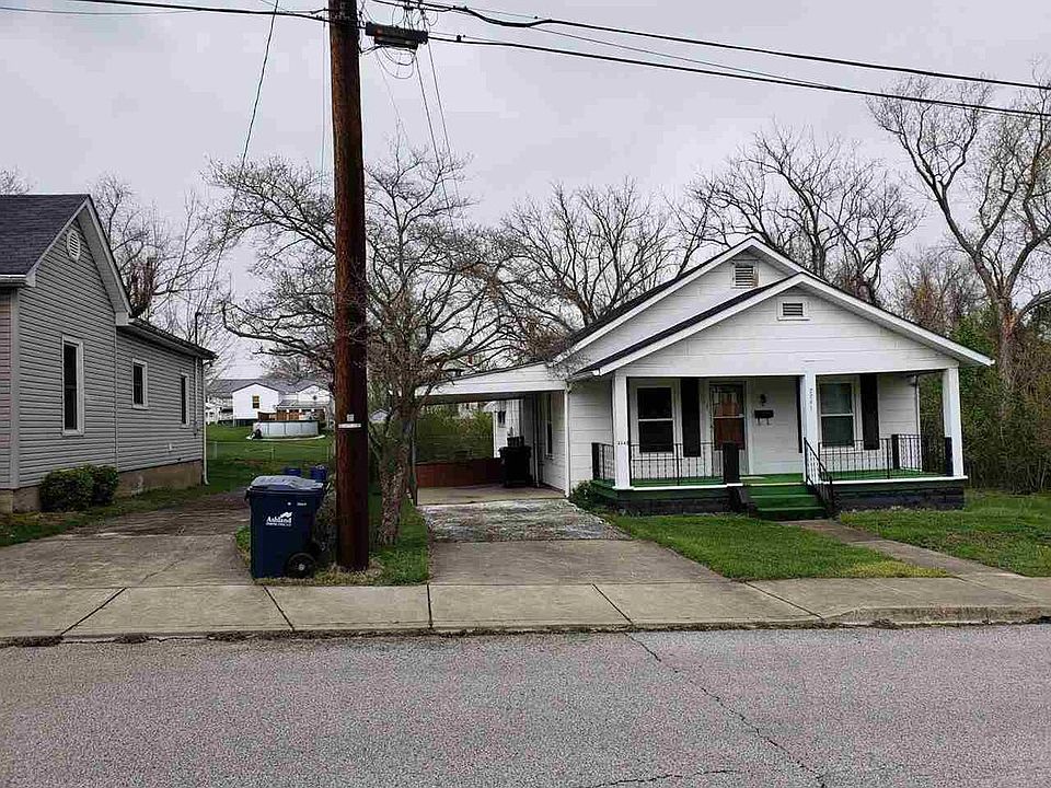 Cottage with 2 bedrooms and 1 bathroom. Approximately 1080 sq. ft. unfinished basement. Attached carport with paved drive. House being "SOLD AS IS- WHERE IS". Sq. ft. is approximate.