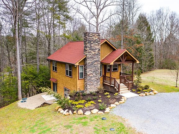 New construction. 2/2 in desirable Laurel Branch North. This adorable custom cabin sits at the back end of the large .99 acre lot, giving you the convenience and seclusion you desire. Rental projections at $40-$45K annually. *Furniture does not convey. Drone photo