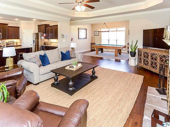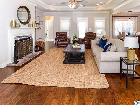 Home includes an open floor plan featuring crown molding, fireplace, 10' ceilings and lots of windows. Kitchen has extra large island, granite counters, tile backsplash, beautiful cabinets with crown molding and recessed lighting. Floors include 5" hardwood in main living and halls. Huge master bedroom with sitting area plus separate closets in master bath. 4th bedroom has private bath. Large covered patio and fenced backyard.