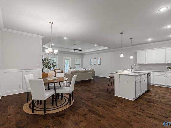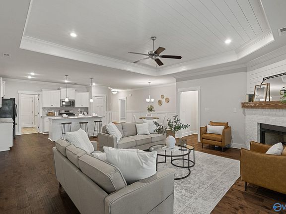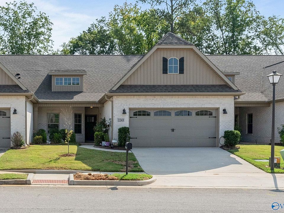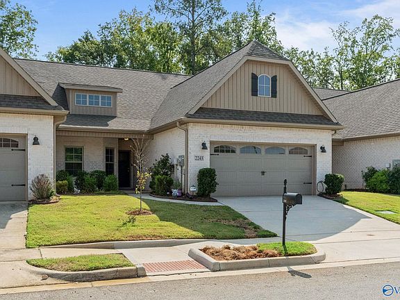 Convenience & comfort located near Redstone Arsenal & Town Madison. Single-owner townhome w/ 3 BD & 2 BTH, offering low-maintenance living w/ style. Open-concept design w/ stunning hardwoods, crown molding, & designer fixtures. Living room w/ trey ceiling, shiplap accents, & cozy gas fireplace. Kitchen w/ ample cabinetry, recessed lighting, granite countertops, stylish backsplash, pantry, & separate dining area. Oversized master suite w/ trey ceiling, shiplap details, walk-in closet, double vanity, & separate tiled shower & tub. Additional features: generously sized bedrooms & 2nd bathroom with granite accents & beautiful tile flooring, private back patio & tree-lined lot for privacy.