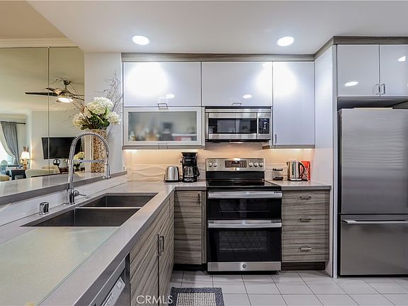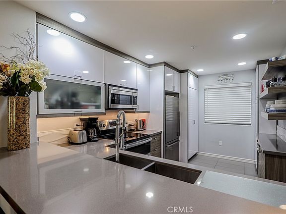 Enjoy resort living at this posh and luxurious complex - The Metropolitan! A guard-gated community with lush tropical landscaping surrounding the beautiful pool, spa, clubhouse and fitness center. Enter into this impressive modern 2 bedroom unit with beautiful upgrades and be wowed! Fantastic kitchen with gorgeous fixtures, custom glossy white cabinets, floating shelves, stainless steel appliances and built-in wine rack. With open floor plan, the kitchen leads into the dining and living room area where you will delight in the beautiful bamboo flooring. Both bedrooms are master suites with ensuite bathrooms. Each bedroom is separated by the living room. Both bathrooms have custom double sink vanities with quartz countertops. Other features include impressive 9-foot ceilings, recessed lighting, crown molding and in-unit laundry. The Met HOA recently added new security and camera systems throughout the property in 2022. The elevator was revamped in 2022. Water and gas included in HOA dues.