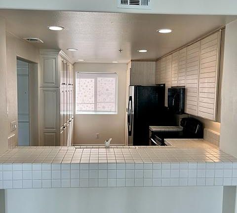 Don't miss your chance to live in this beautiful 2 bedroom, 2 bath Top Floor unit. It has a nice open floor plan with North facing views. The large living room has a fireplace with tall ceilings and a balcony, and is open to the dining room and the kitchen with a nice breakfast bar. There is a stacked washer and dryer in the kitchen as well as other appliances - frig, stove and dishwasher. It has central air and heat, recessed lighting, Dual pane windows, newer carpet. The primary bedroom is nice sized with it's own balcony. The primary bathroom has a separate tub and shower with double sinks. The lushly landscaped grounds have a guard gated front gate and includes a nice size swiiming pool, a large Spa tub, a state of the art gym and nice clubhouse. Water, trash and gas paid for by owner. There are 2 subterranean side by side parking spots for this unit. Elevators in the complex, walking distance to restaurants and the airport. There is a walking path around complex. It will be available to rent starting March 1st. See for yourself and you will be very happy you did. Owner pays water, gas and HOA fees