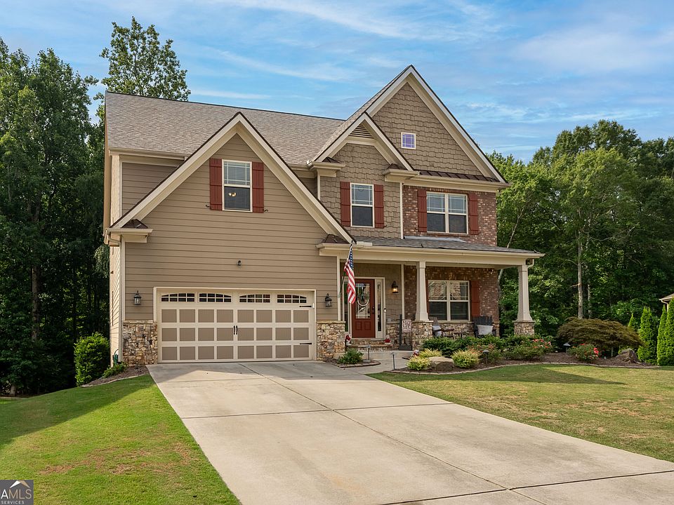 This expansive Craftsman-style home boasts six large bedrooms and four full bathrooms, perfect for accommodating family, friends and guests. Located in desirable Cherokee Bluff school district. The main level features a guest suite with a full bathroom, ideal for visitors or multi-generational living. Upstairs, you'll find additional spacious bedrooms and baths, including a huge primary suite with a luxurious bathroom. The main level is adorned with beautiful hardwood floors and offers two versatile flex spaces, perfect for a dining room or home office. The gourmet kitchen is a chef's dream, featuring stained cabinets, granite countertops, stainless steel appliances, and a stone fireplace. Enjoy outdoor living with a charming rocking chair front porch and a screened-in back porch complete with a cozy fireplace. The home is set on a huge, lush yard with a flat backyard that backs up to green space, providing privacy and tranquility. The neighborhood offers an array of amenities, including a pool, tennis courts, sidewalks, and streetlights. Conveniently located close to shopping, restaurants, and award-winning schools, this home provides the perfect blend of luxury and convenience.